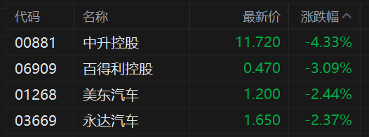 港股汽车经销商股集体走低,其中,中升控股跌4.3%,百得利控股跌超3%开户配资网站,美东汽车、永达汽车跌2.4%。